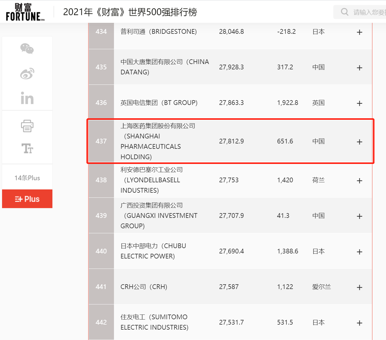 2021年8月2日,《財(cái)富》雜志正式發(fā)布“2021年《財(cái)富》世界500強(qiáng)排行榜單”,上海醫(yī)藥集團(tuán)股份有限公司(601607.SH,02607.HK,以下簡(jiǎn)稱“上海醫(yī)藥”)再次上榜,位列第437位。這也是繼2020年首次入選后,上海醫(yī)藥再度憑借自身實(shí)力強(qiáng)勢(shì)登榜,排名躍升36位。